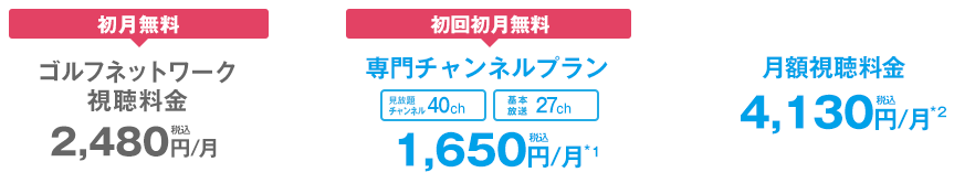 *1 「ひかりTVはじめて割」が適用された月額利用料金です。「ひかりTVはじめて割」は、「専門チャンネル・ビデオプラン」「専門チャンネルプラン」